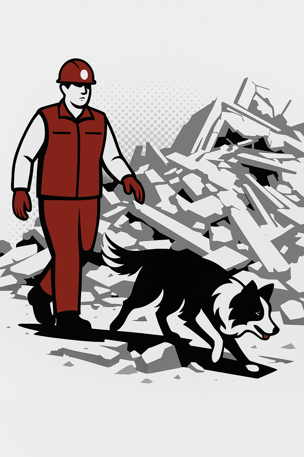 Hundeføreren får ved start fortalt et scenarie, og skal herefter planlægge eftersøgningen ud fra dette. Området er på højeste niveau op til 1.500 m2 stort med sammenstyrtede bygninger i flere etager, og der er gemt 3 figuranter på en måde, så hunden under ingen omstændigheder kan nå ind til dem. Under hundens arbejde går der mennesker rundt i området.